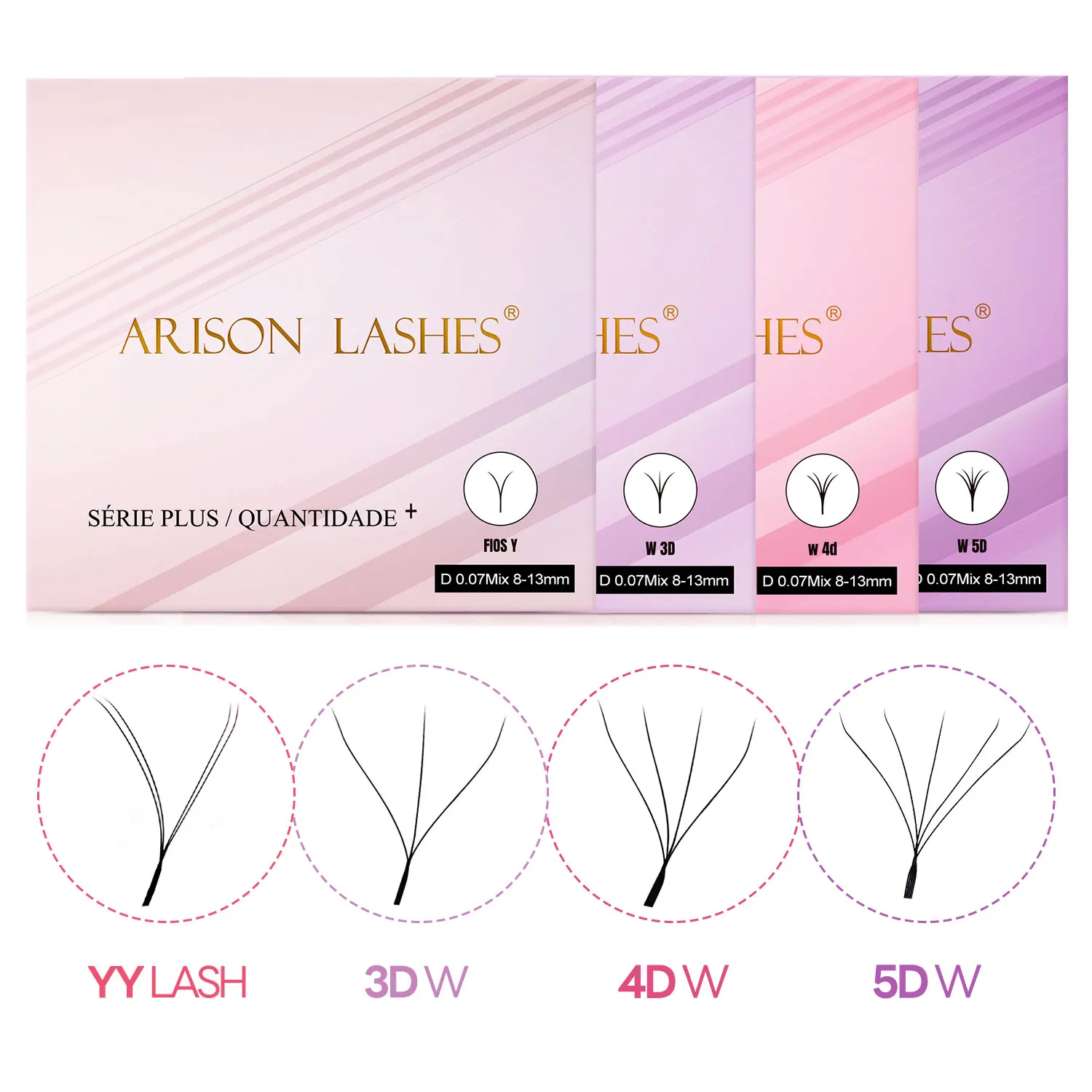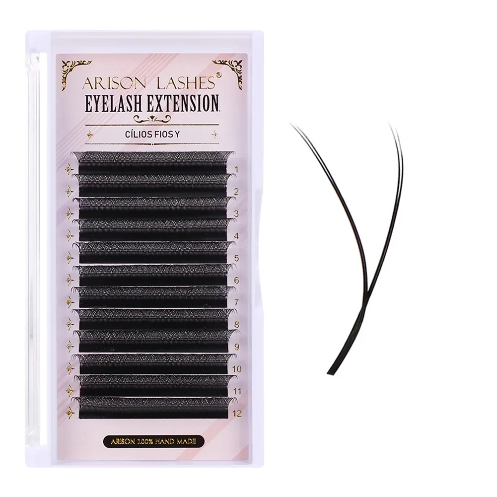The ARISON Plus series offers a range of high-quality premade volume fan eyelash extensions, including YY, 3D W, 4D W, and 5D W-shapes. Designed for both professional lash artists and enthusiasts, these hand-made lashes are crafted from high-quality synthetic black silk material, ensuring a stable curl that lasts for over a year. The innovative YY and W-shape designs create a full and thick look, with each fan providing the effect of multiple lashes, significantly reducing application time. The lashes come on a tin paper bottom card that allows for repeated pasting, making them easy and convenient to use. Available in various lengths (8mm to 14mm and mixed trays), curls (C/D), and a standard 0.07mm diameter, these extensions are perfect for achieving a natural yet voluminous style.